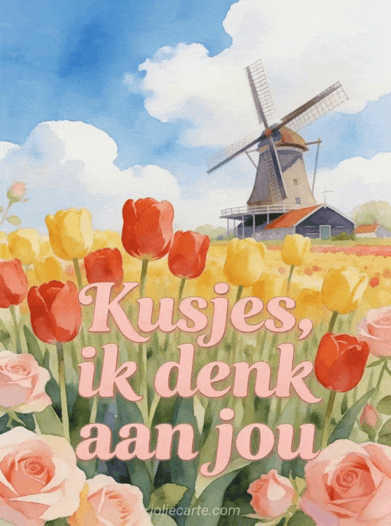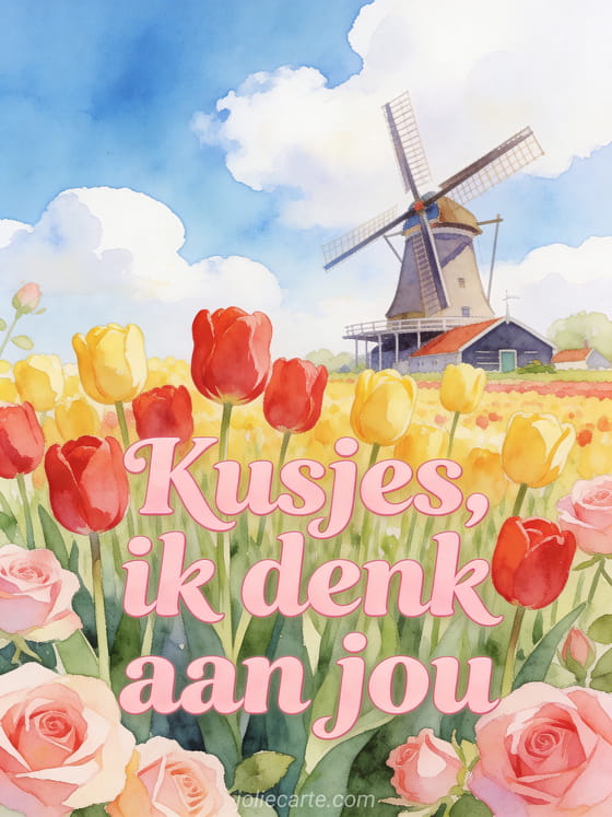 Stuur kusjes en laat weten dat je aan iemand denkt met deze vrolijke tulpenkaart. Bekijk ook ik denk aan jou ik denk aan ons of sms ik denk aan jou lieverd.