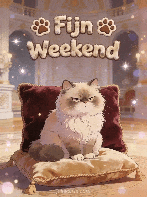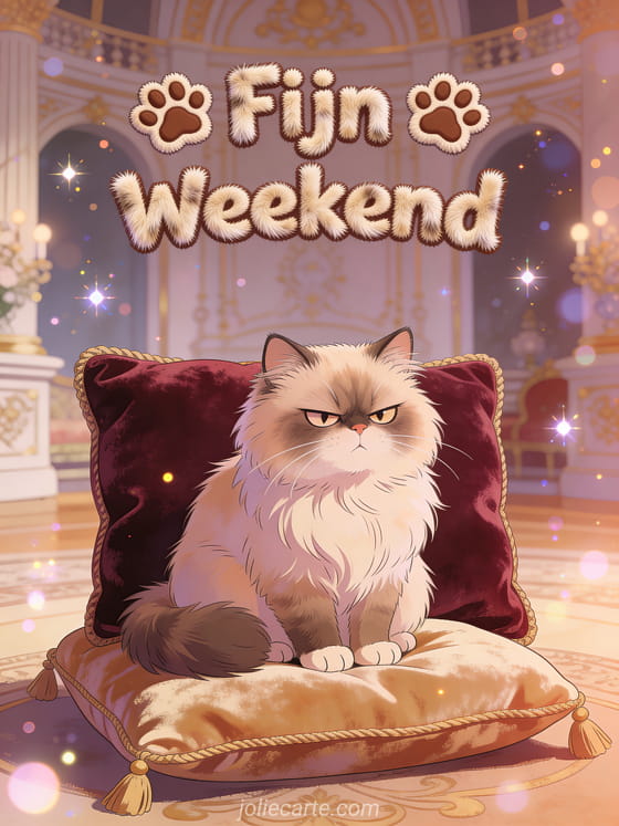 Laat iemand lachen dit weekend met deze grappige kaart met een mopperende Perzische kat in koninklijke verachting-modus. Ontdek ook een fijn weekend gif of afbeeldingen van fijn weekend.