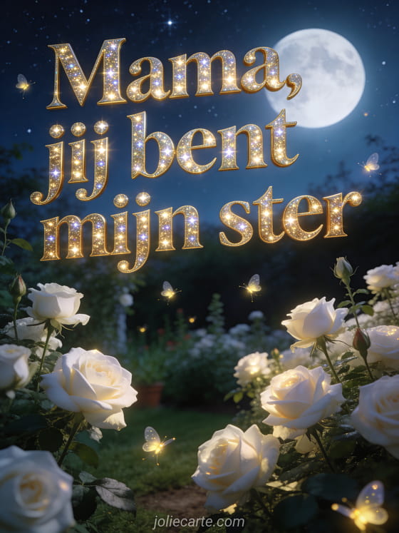Deel een romantische moederdaggroet met sterrennacht, witte rozen en maanlicht. Bekijk ook moederdag gedicht lang, moederdag poster gratis en bericht om fijne moederdag te wensen.
