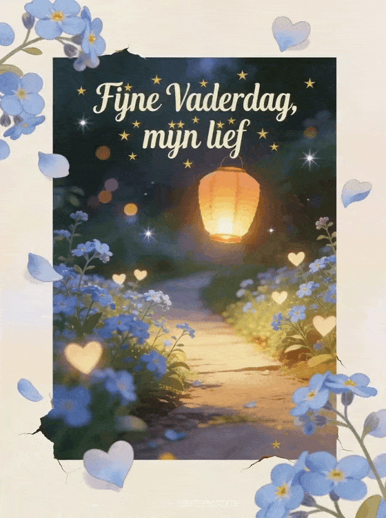 Stuur je lief een stralende Vaderdaggroet met een hemellantaarn, vergeet-mij-nietjes en tedere hartjes. Kies ook een gratis kaart voor vaderdag, een liefdesgedicht voor Vaderdag of een fijne Vaderdag afbeelding.