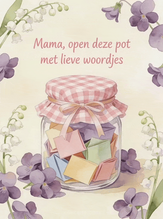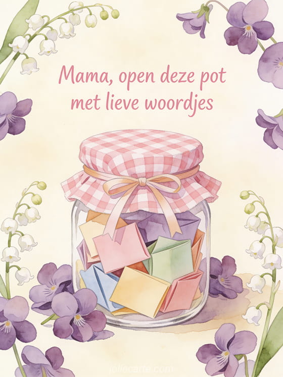 Stuur deze tedere moederdagkaart als een pot vol liefdevolle woorden. Bekijk ook fijne zondag van moederdag, uitnodiging moederdag en kaart fijne moederdag.