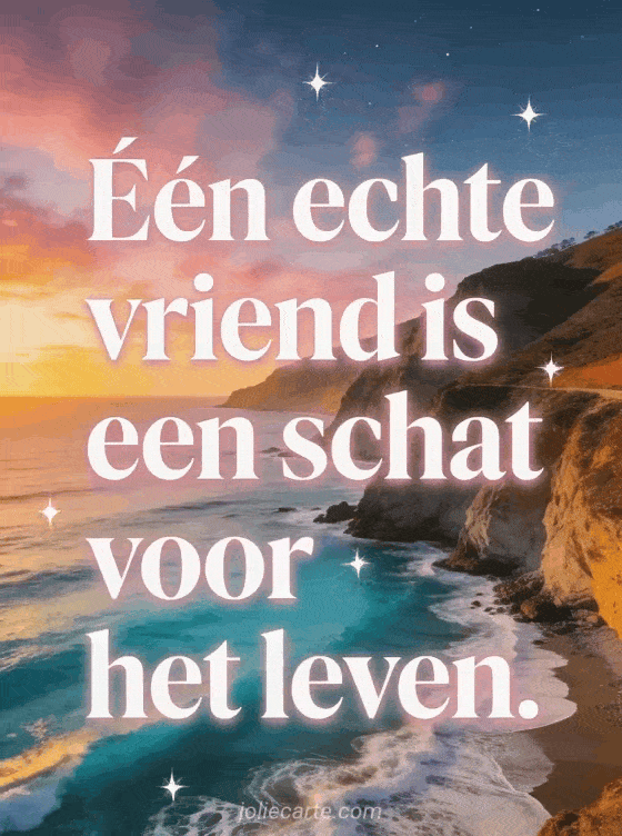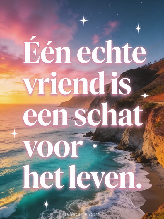 Stuur een prachtige vriendschapskaart met een inspirerend bericht over ware vriendschap. Een realistische kustlandschap bij zonsondergang maakt deze kaart bijzonder en onvergetelijk.