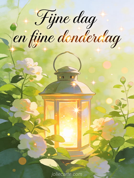 Deel een mooie afbeelding voor fijne donderdag met sierlijke letters, een lichtgevende lantaarn tussen bloeiend groen en een warme glans. Stuur ook warme fijne donderdag afbeelding, fijne winterse donderdag of kaarten om een fijne donderdag te wensen.