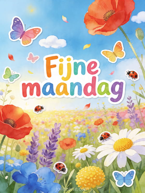 Deel deze fijne maandag kaart en begin de week met kleur en optimisme. Bekijk ook het regent fijne maandag in de regen, fijne regenachtige maandag en afbeeldingen fijne maandag winters.