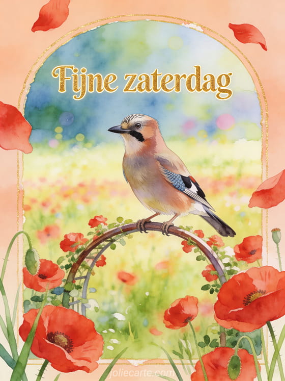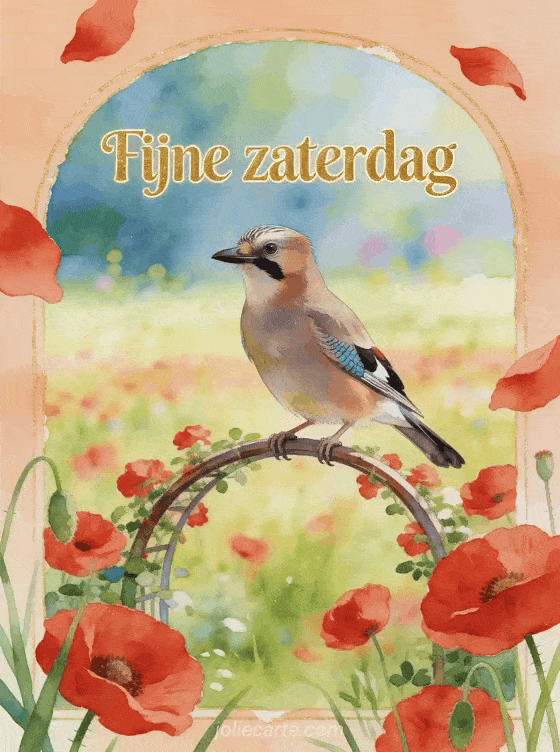 Deel een kleurrijke fijne zaterdag boodschap met een zachte aquarel vol klaprozen en warm weidelicht. Stuur ook een fijne zaterdag en fijn weekend geanimeerde gif, een zaterdag fijne dag afbeelding of fijne zaterdag gif afbeeldingen.