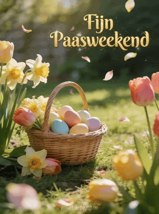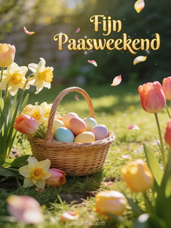 Stuur een mooie kaart om een fijn paasweekend te wensen met kleurrijke eieren en lentebloemen. Ontdek ook een paas wknd.