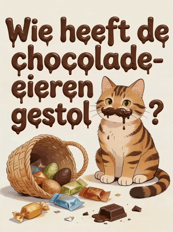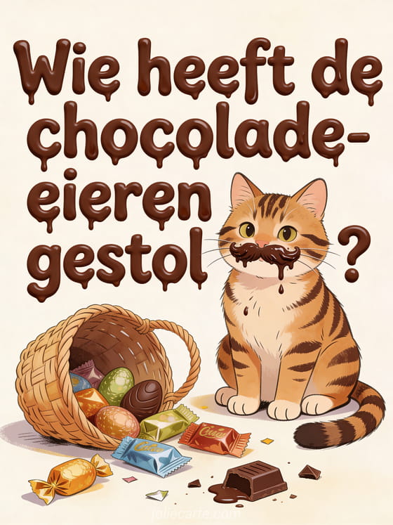 Pasen humor een grappige paaskaart met een gestreepte kat als verdachte chocoladedief