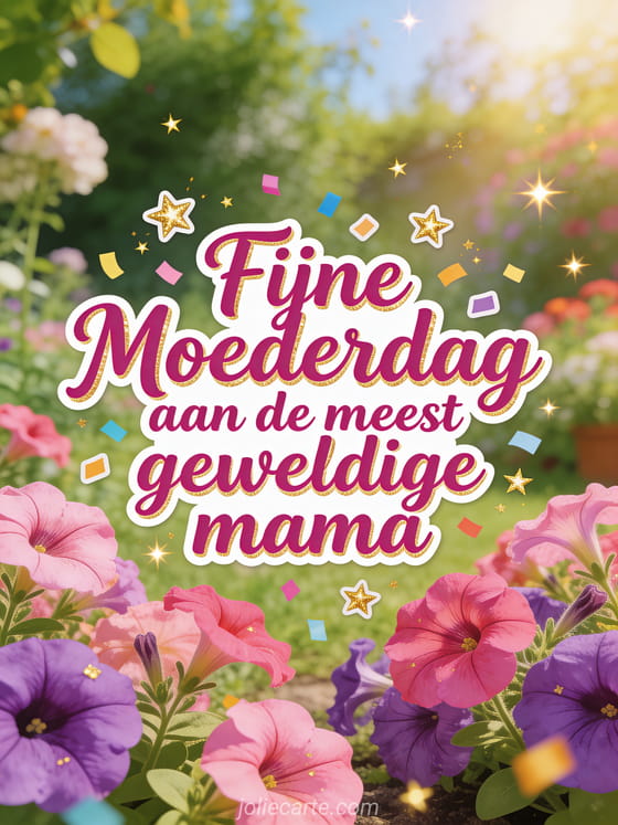 Verras de meest geweldige mama met deze levendige pinterest moederdagkaart met bloeiende petunias. Ontdek ook een moederdag kaart of een moederdag gif.