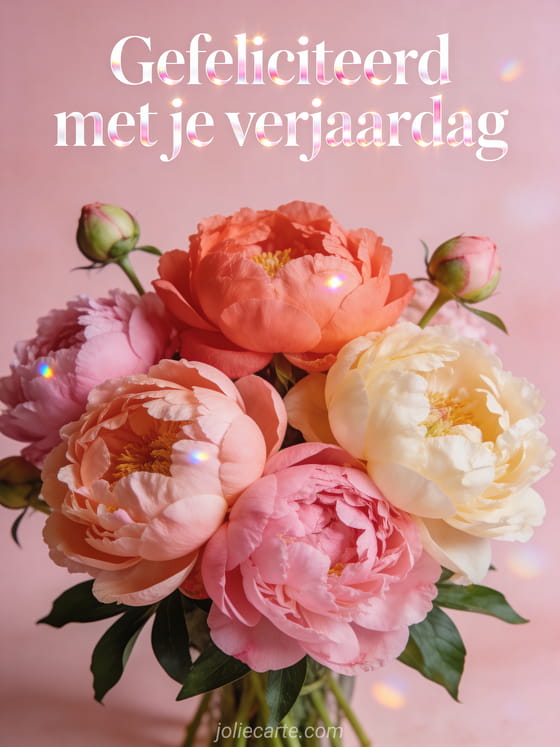 Gratis wenskaart pioen verjaardag vrouw bloemen