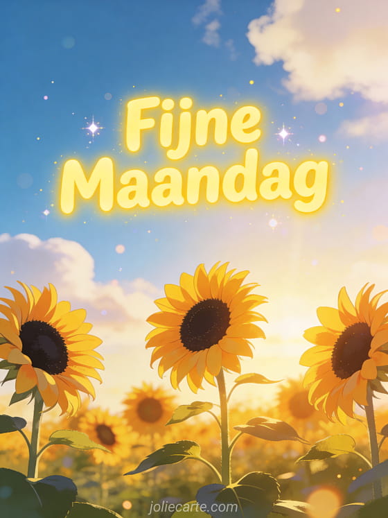 Stuur een positief en optimistisch fijne maandag citaat met zonnebloemen onder een blauwe hemel. Ontdek ook een goedemorgen fijne maandag kusjes kaart of een maandag begin van de week kaart.