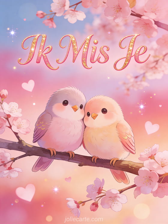 Stuur iemand een romantische ik mis je boodschap met deze gratis wenskaart. Ontdek ook een ik mis je sms kaart, een ik mis je zo erg kaart of een ik mis je citaat kaart.