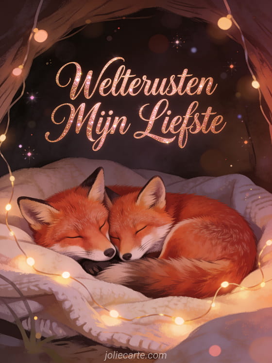 Stuur je liefste een romantische welterusten boodschap met deze gratis wenskaart. Ontdek ook een welterusten mijn liefste op afstand kaart of een welterusten mijn liefste kaart.