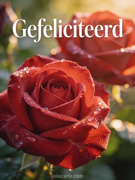 Deel deze fotorealistische macrokaart met rode rozen, dauwdruppels en zacht ochtendlicht. Bekijk ook afbeelding gefeliciteerd vrouw gratis, gif humor verjaardag vrouw en gefeliciteerd vrouw tekst.