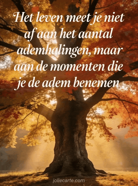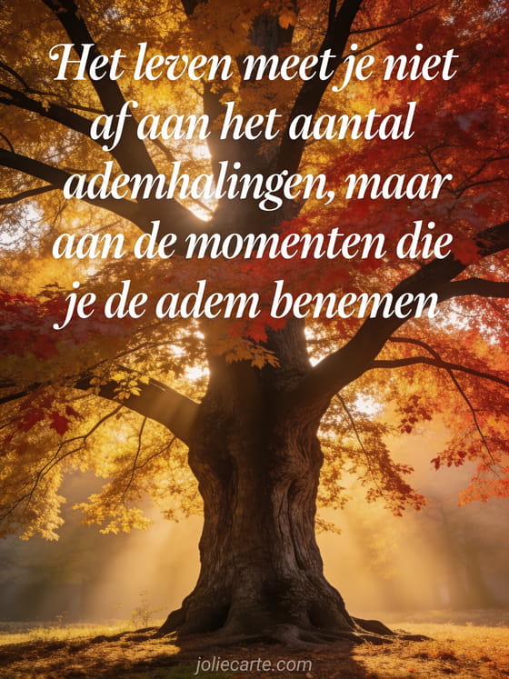 Verras haar met een inspirerende spreuk op haar verjaardag. Een majestueuze herfstboom in gouden herfstkleuren met een tijdloze boodschap over de mooie momenten van het leven. Ontdek ook een van harte gefeliciteerd vrouw humor of een verjaardagskaart vrouw humor gratis.