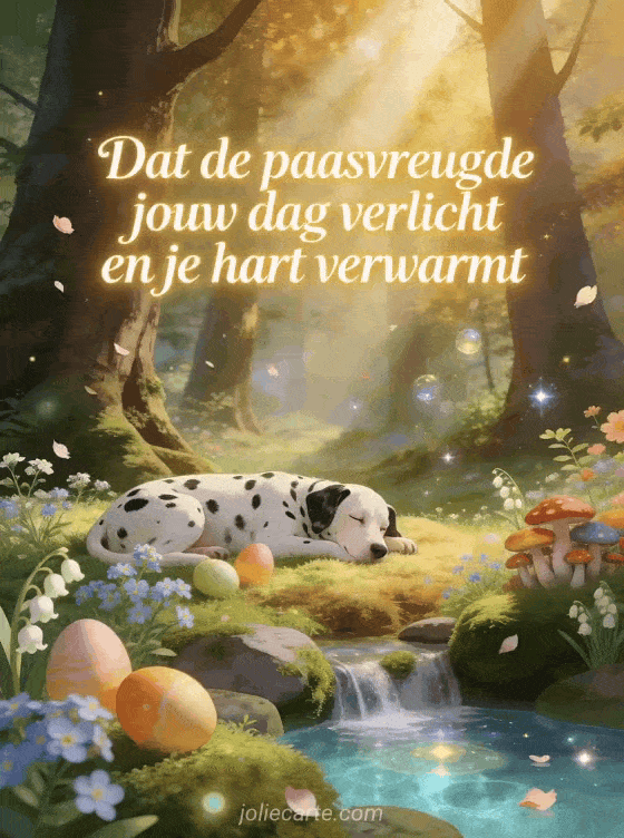 Stuur een mooie paaskaart met een tedere tekst en deel de lentemagie van het betoverde bos met je dierbaren. Bekijk ook een feestdagen gifs geanimeerd gratis pasen gif, een vrolijk paasfeest afbeelding of een feestdagen geanimeerde gif vrolijk pasen.