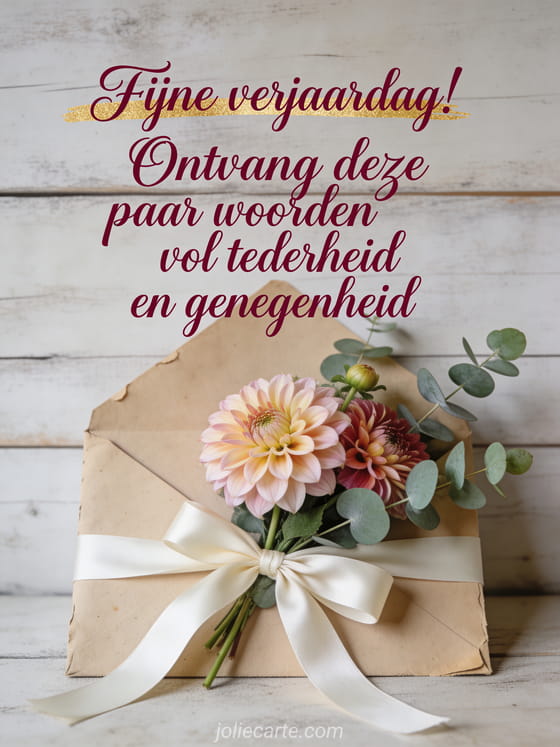 Stuur een ontroerende verjaardagskaarttekst met delicate bloemencompositie, charme van een oude envelop en warme nostalgische stijl. Bekijk ook verjaardagsbericht, verjaardagsbericht sms en een verjaardagsbericht sturen.