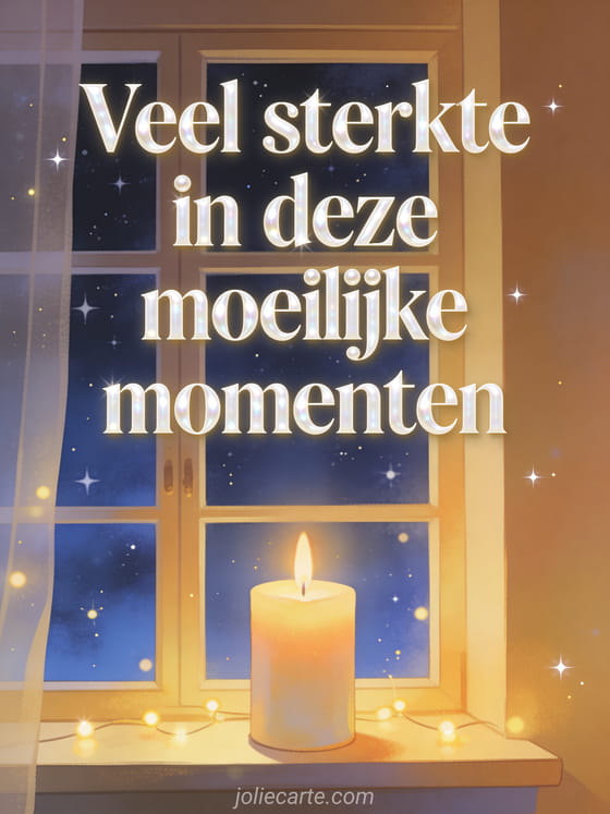 Stuur een serene en troostende kaart met een brandende kaars op een vensterbank met uitzicht op een sterrennacht om iemand kracht te geven in moeilijke momenten. Bekijk ook een veel sterkte positieve vibes humor, veel sterkte gratis afbeeldingen of hoe iemand veel sterkte wensen.