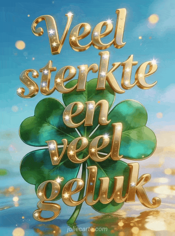Stuur een glanzende kaart met een smaragdgroen klavertje-vier en fonkelende sterren om iemand veel sterkte en geluk te wensen. Bekijk ook een veel sterkte voor jou, veel sterkte hart of een gif veel sterkte.