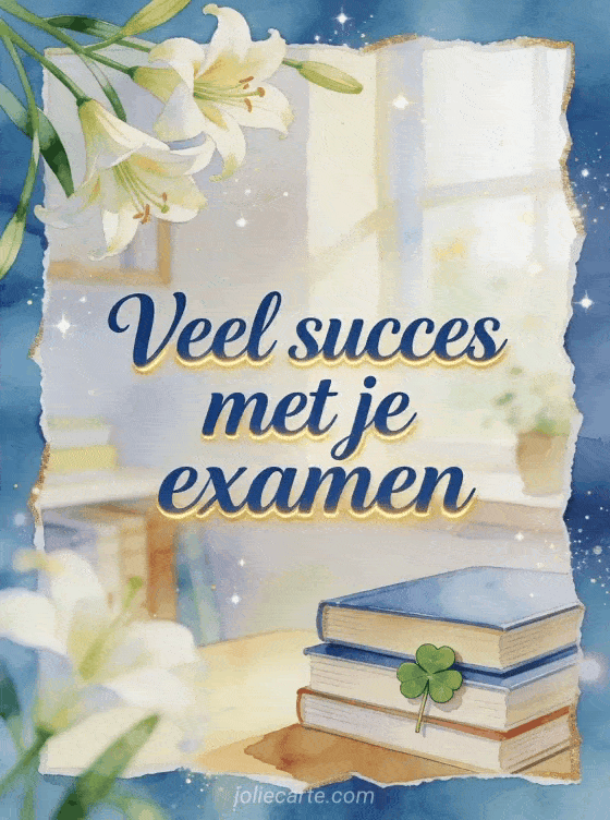 Gratis kaart voor veel succes met examen en boeken