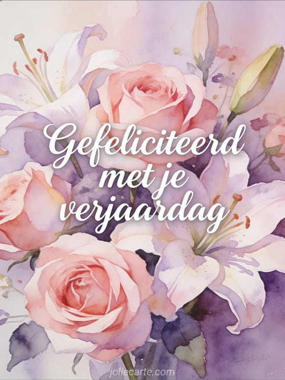 Stuur deze mooie gratis verjaardagskaart met florale aquarelillustraties om de vrouw in jouw leven te vieren. Ontdek ook een mooie verjaardagskaart vrouw, een gratis vintage verjaardagskaart vrouw of gratis verjaardagskaarten vrouw.