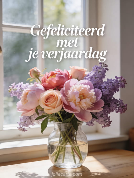 Gratis wenskaart verjaardag vrouw met bloemen