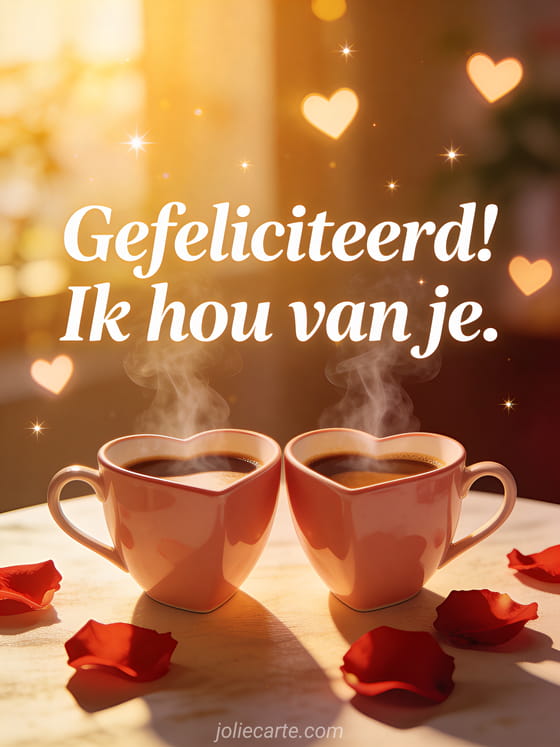Verras je man met dit romantische verjaardagsbericht met twee dampende koffiekopjes in hartvorm. Ontdek ook een pinterest verjaardagskaart man of een mooie verjaardagskaart man.