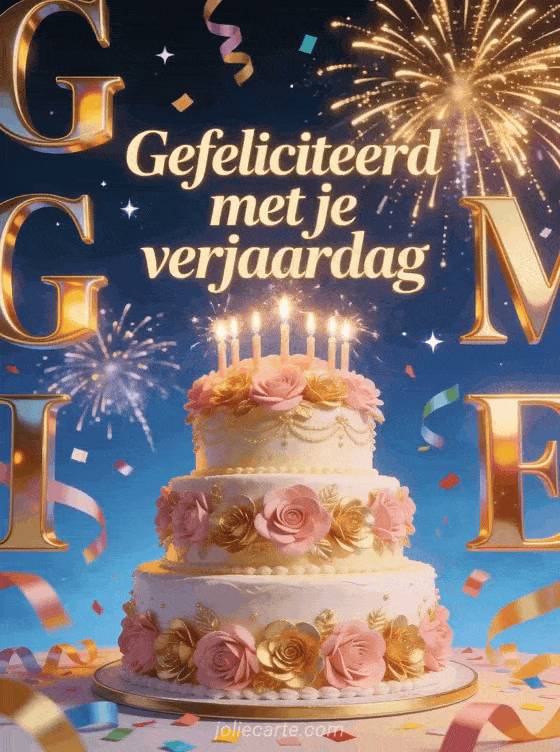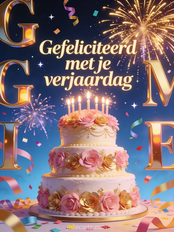 Verras jouw vriendin met deze prachtige verjaardagskaart met een drielaagse taart met suikerrozen en gouden vuurwerk. Ontdek ook een verjaardagskaart gefeliciteerd vriendin of een bericht verjaardag aan een vriend.