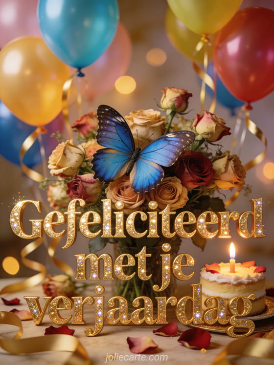 Verras een vriendin met deze vrolijke verjaardagskaart met een prachtige blauwe Morpho vlinder op antieke rozen. Ontdek ook een bericht verjaardag aan een vriend of een gefeliciteerd vriendin als zusje.
