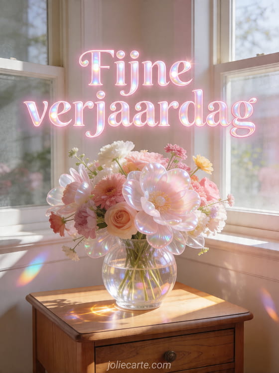 Fijne verjaardag een tedere verjaardagsgroet met een stralend boeket