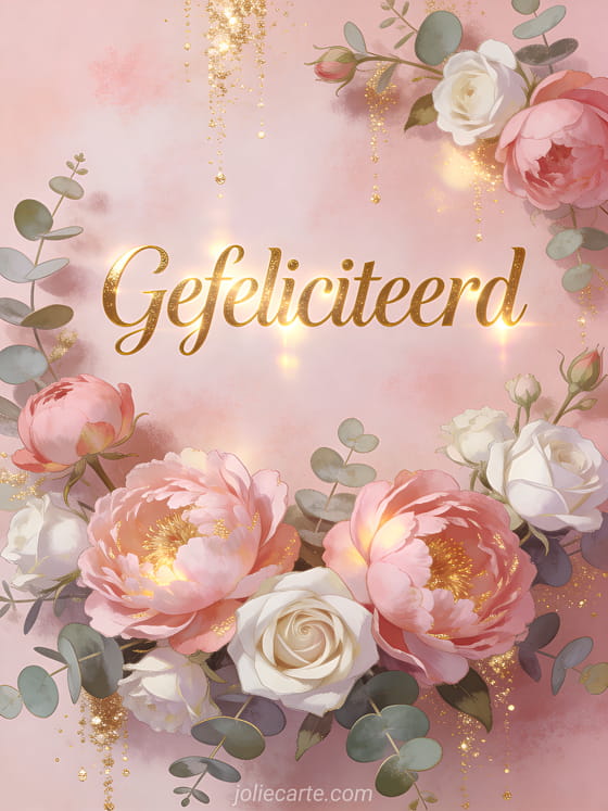 Stuur een prachtige verfijnde verjaardagskaart voor een vrouw of zus met roze pioenrozen, witte rozen en eucalyptus. Bekijk ook een verjaardagskaart voor een zus of een tekening verjaardag zus.