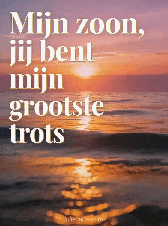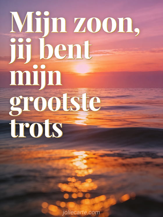 Deel een oprechte verjaardagskaart voor je zoon met een fotorealistische zonsondergang boven een kalme zee, gouden reflecties en een tedere boodschap van trots. Bekijk ook een fijne verjaardag mijn zoon citaat of een gefeliciteerd met je verjaardag mijn grote jongen.