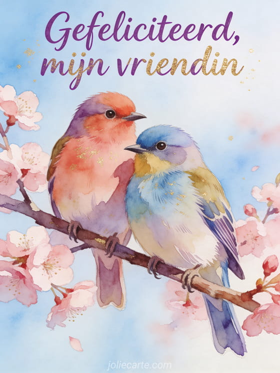 vriendschap vriendin vriendschap gefeliciteerd vrouw Een vriendelijke verjaardagsgroet met lentekleuren en zachte aquarelstijl.