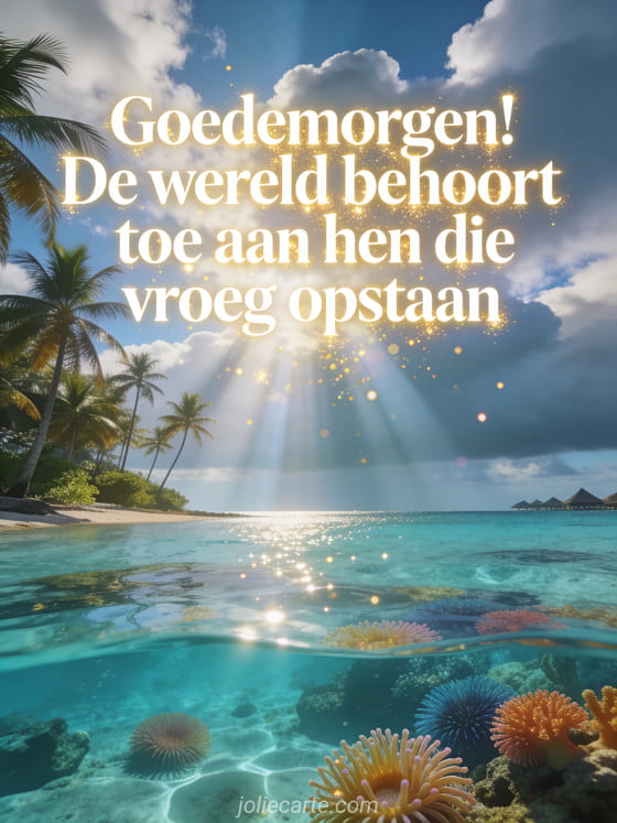 Stuur dit gratis motiverende goedemorgen bericht en inspireer iemand die vroeg opstaat. Ontdek ook een goedemorgen bericht kaart of een goedemorgen kaart.