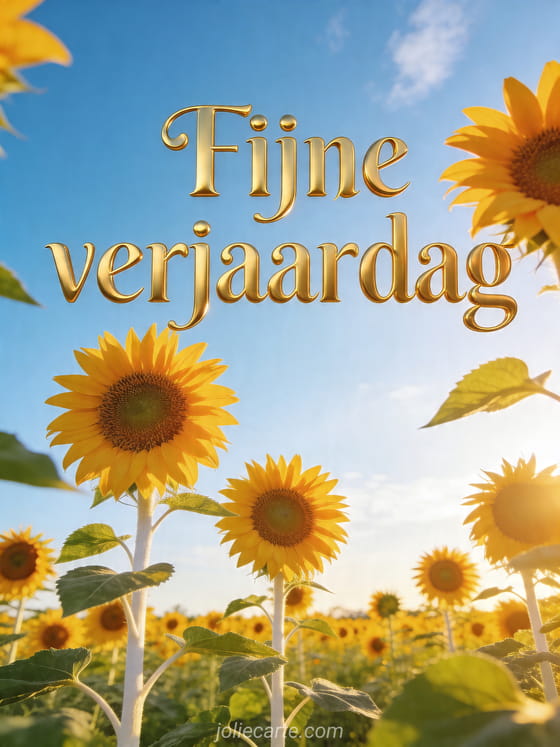 Fijne verjaardag een vrolijke verjaardagsgroet in een stralend zonnebloemveld