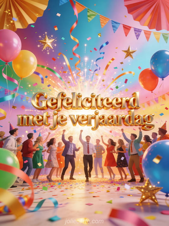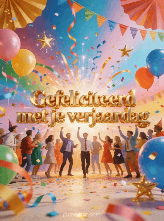 Stuur een vrolijke gratis verjaardagskaart om samen een gelukkige verjaardag te wensen met kleurrijke confetti, slingers en ballonnen. Ontdek ook gelukkige verjaardag schattig gif, afbeelding gelukkige verjaardag vogel of gratis gif gelukkige verjaardag.