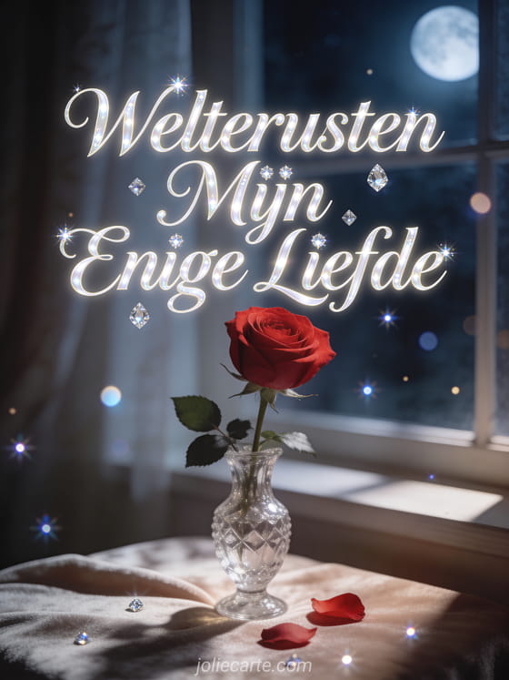 Stuur je enige liefde een elegante welterusten boodschap met deze gratis wenskaart. Ontdek ook een afbeelding welterusten mijn liefste kaart, een bericht welterusten liefde kaart of een romantisch welterusten mijn liefste kaart.