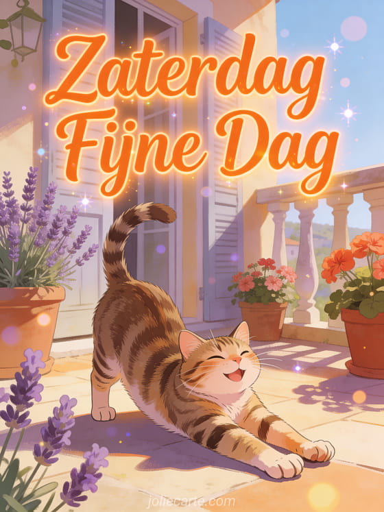 Wens iemand een geweldige zaterdag met deze vrolijke kaart met een tijgerkat. Ontdek ook een fijne zaterdag en fijn weekend kaart of een fijne zaterdag zonnig kusjes kaart.