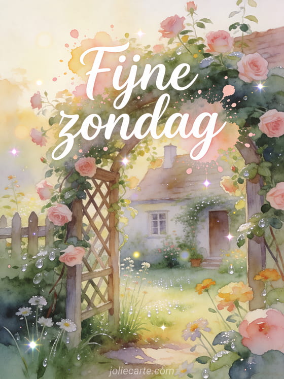 Deel zondag mooie goedemorgen afbeelding met een charmante huisjestuin, klimrozen en een zachte aquarelsfeer van het Engelse platteland. Stuur meer zondagse schoonheid met fijne zondag prachtig landschap, haarkleur herfst winter 2016 of grappige fijne zondag gif.