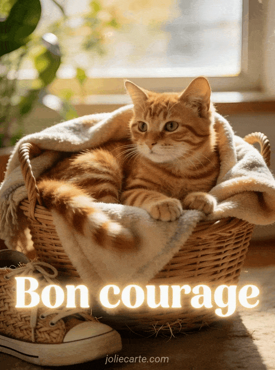 Envoyez un bon courage chat pour réconforter un proche avec une image mignonne et chaleureuse. Pour d'autres encouragements, découvrez un bon courage de tout coeur avec toi, un bon courage déménagement avec humour ou un bon courage à toi ou pour toi.