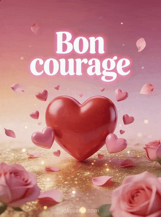 Exprimez votre soutien avec une image bon courage accompagnée d'un coeur, un geste tendre pour encourager ceux que vous aimez. Découvrez aussi une image de bon courage dans vos recherches, un gif bon courage ou un soutien moral bon courage.