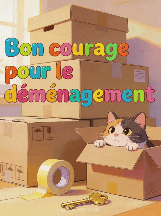 Souhaitez bon courage pour le déménagement afin d'accompagner un proche dans ce nouveau départ avec bonne humeur. Découvrez aussi une photo de bon courage, un bon courage tout ira bien ou une image bon courage chat.