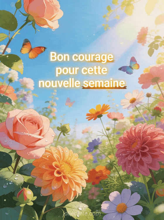 Souhaitez bon courage pour cette nouvelle semaine avec cette image fleurie et vivifiante. Découvrez aussi une image drÎle de bon courage pour le travail, un message de bon courage pour le travail ou un bon courage pour le boulot.
