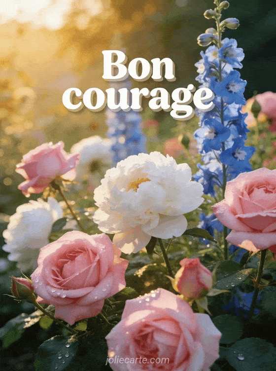 Envoyez cette image pleine de douceur pour souhaiter bon courage avant une opération. Un jardin en fleurs pour transmettre votre soutien, à voir aussi avec un message de rétablissement, pour souhaiter bon courage ou un mot aprÚs accident.