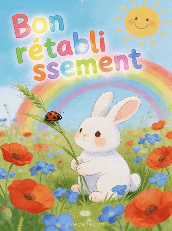 Envoyez cette carte de bon rétablissement à un enfant pour lui apporter gaieté et réconfort pendant sa convalescence. Découvrez aussi une carte virtuelle de bon rétablissement, une carte de rétablissement santé ou une image bon rétablissement homme.