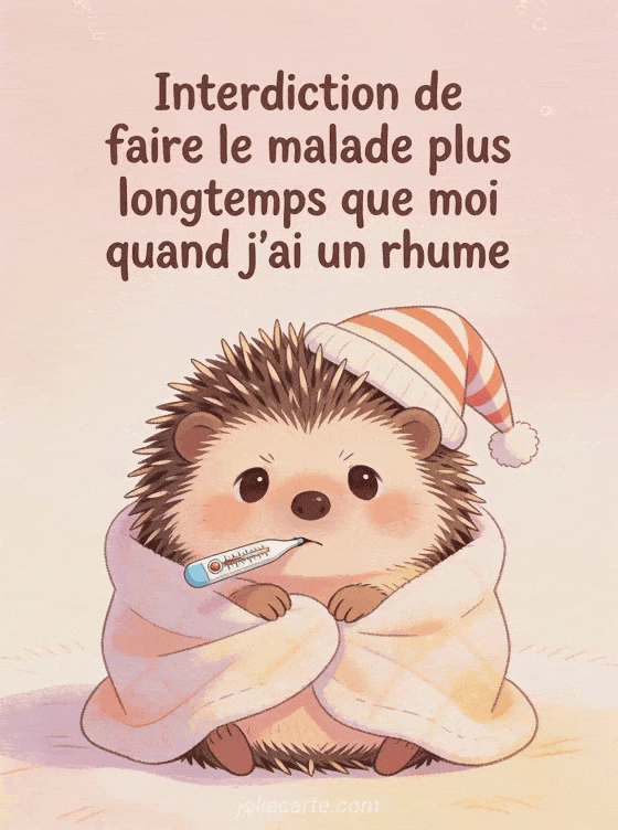 Envoyez cette carte de bon rétablissement humoristique avec un hérisson boudeur et son thermomÚtre. Variez les plaisirs avec un rétablissement rigolo, un message humour femme ou un texte drÎle de rétablissement.