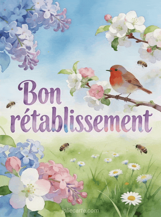 Téléchargez cette carte de bon rétablissement gratuite pour envoyer vos pensées de guérison à un proche avec fraßcheur et douceur. Découvrez aussi une carte jour de naissance et dons guérison, une carte de voeux bon rétablissement ou une carte bon rétablissement collÚgue.