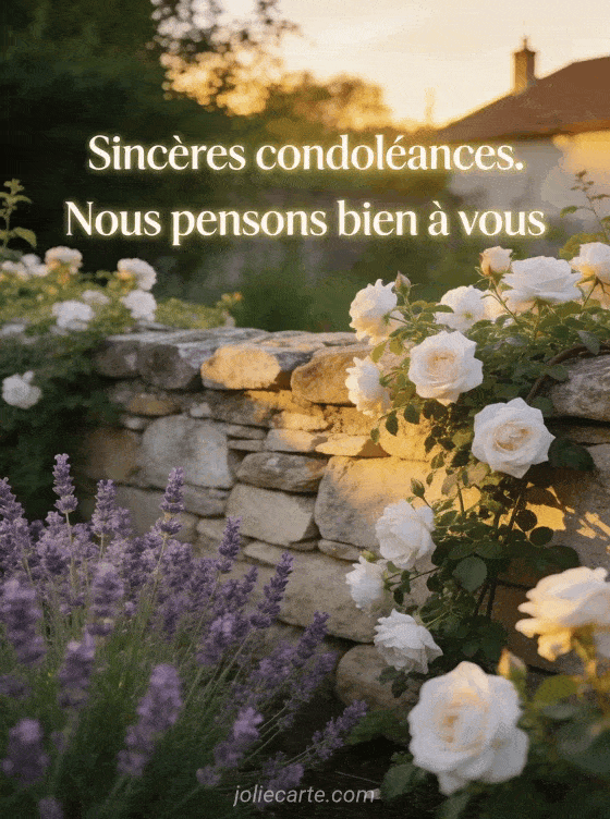 Sincères condoléances. Nous pensons bien à vous une carte de condoléances pour un voisin