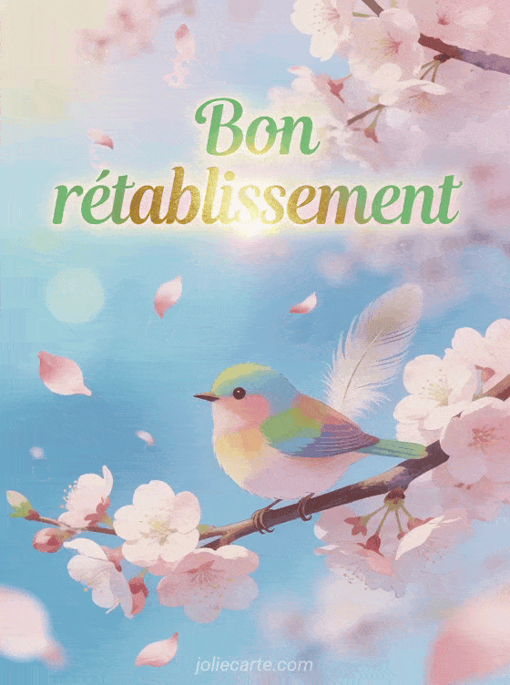 Envoyez une carte de rétablissement à un proche pour l'accompagner avec tendresse sur le chemin de la guérison. Découvrez aussi un bon courage guérison, des messages de prompt rétablissement ou une citation courage positive bon rétablissement.