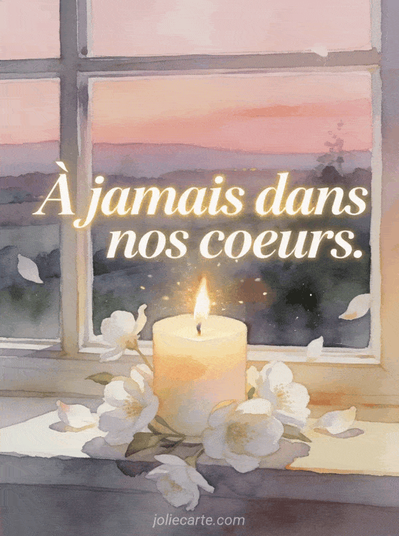 Ă jamais dans nos coeurs. une carte souvenir pour garder en mĂ©moire un ĂȘtre cher aprĂšs un dĂ©cĂšs