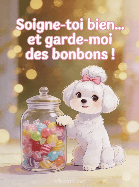 Soigne-toi bien... et garde-moi des bonbons ! un gif animé bon rétablissement plein d'humour